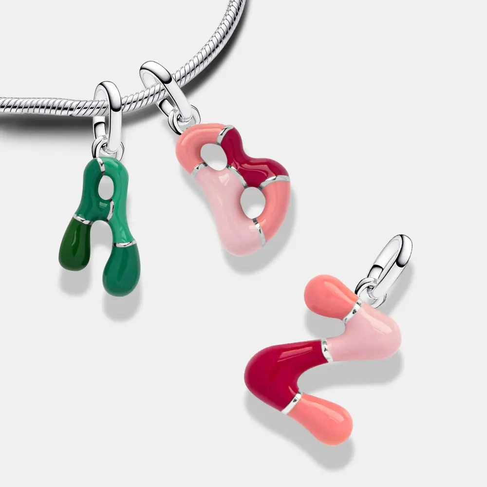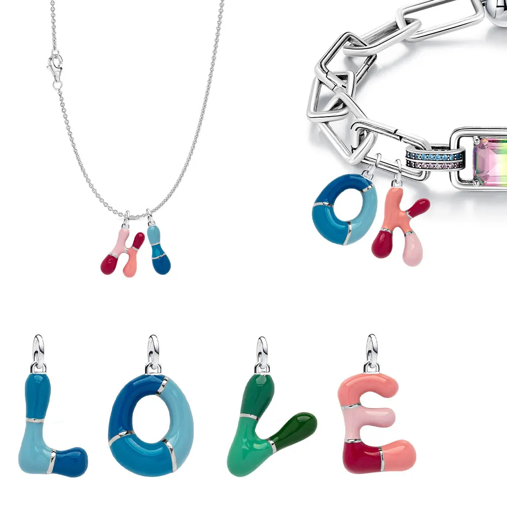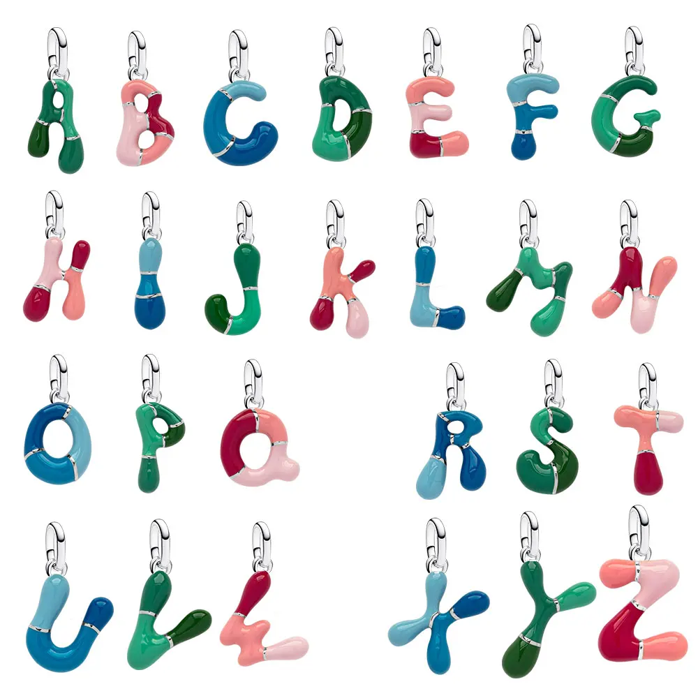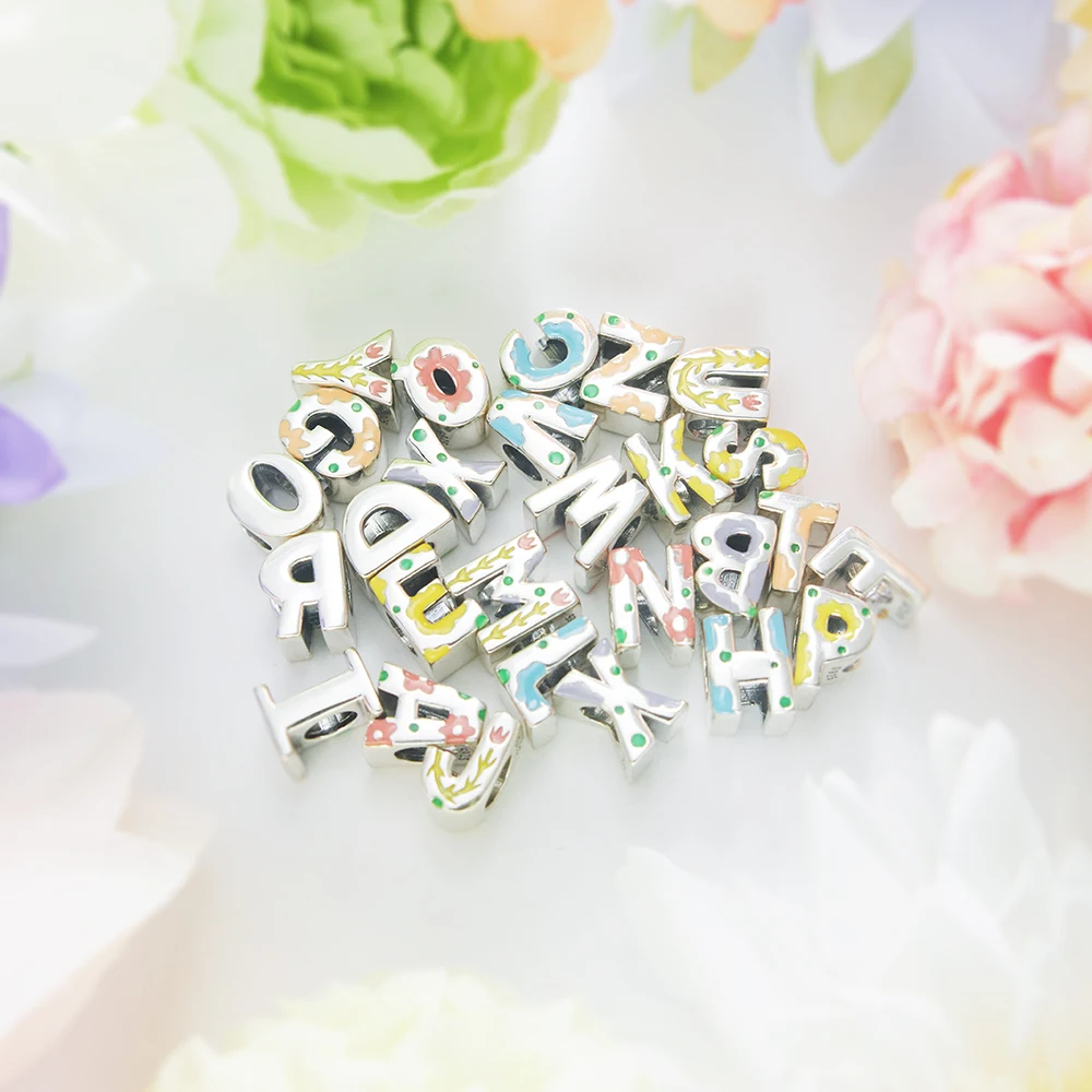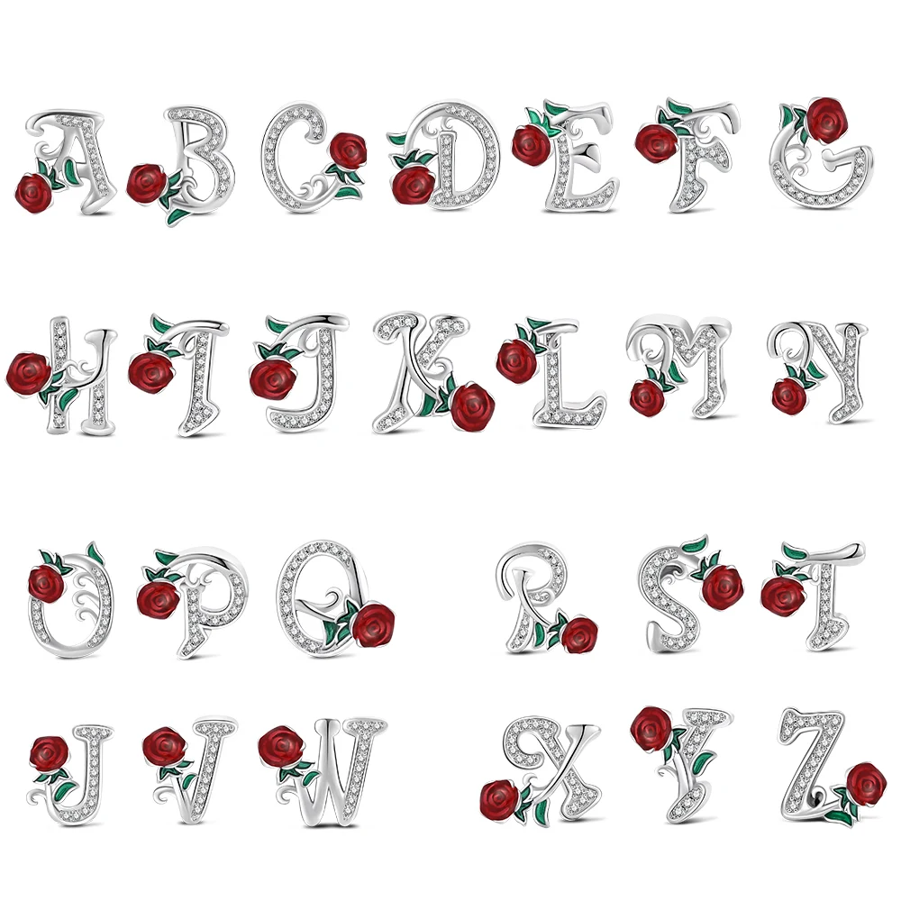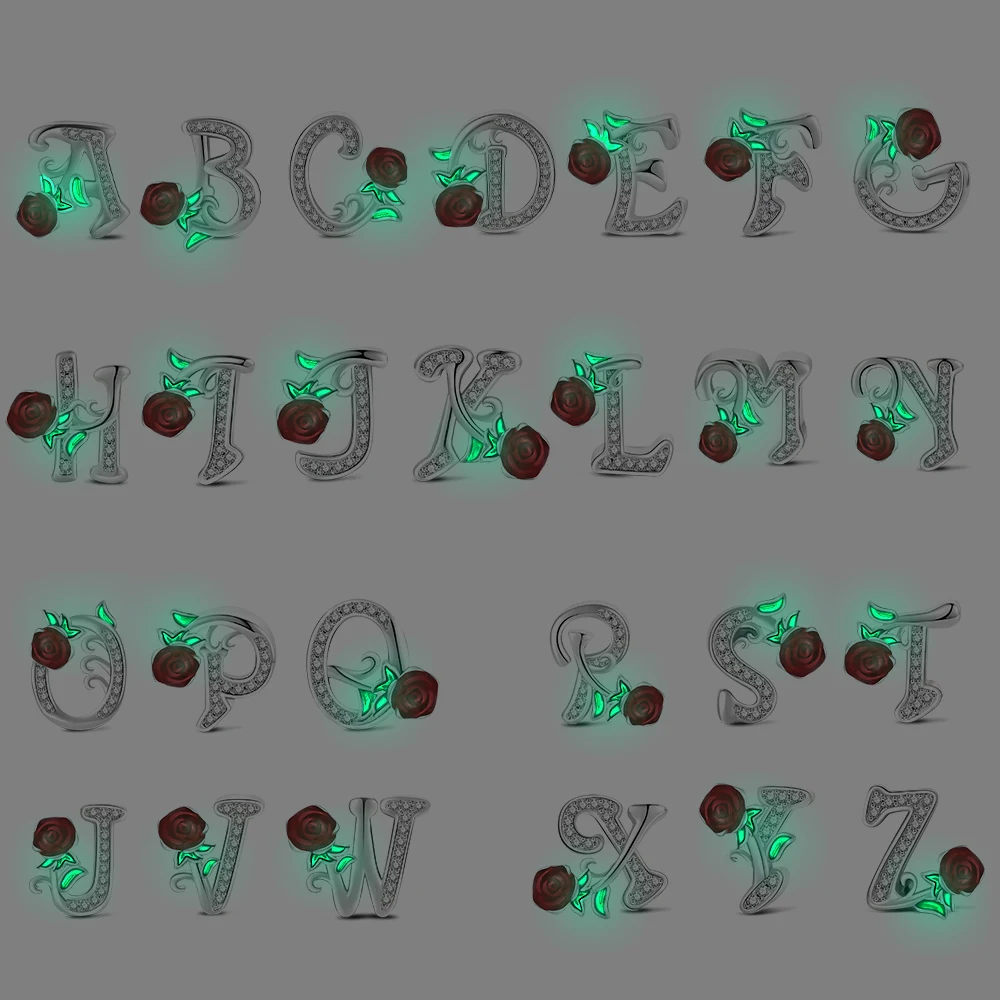 26 Letter A-Z Bead 925 Sterling Silver Rose Fluorescent Pendant for Original 3mm Bracelet&Necklace DIY Jewelry Charm Love