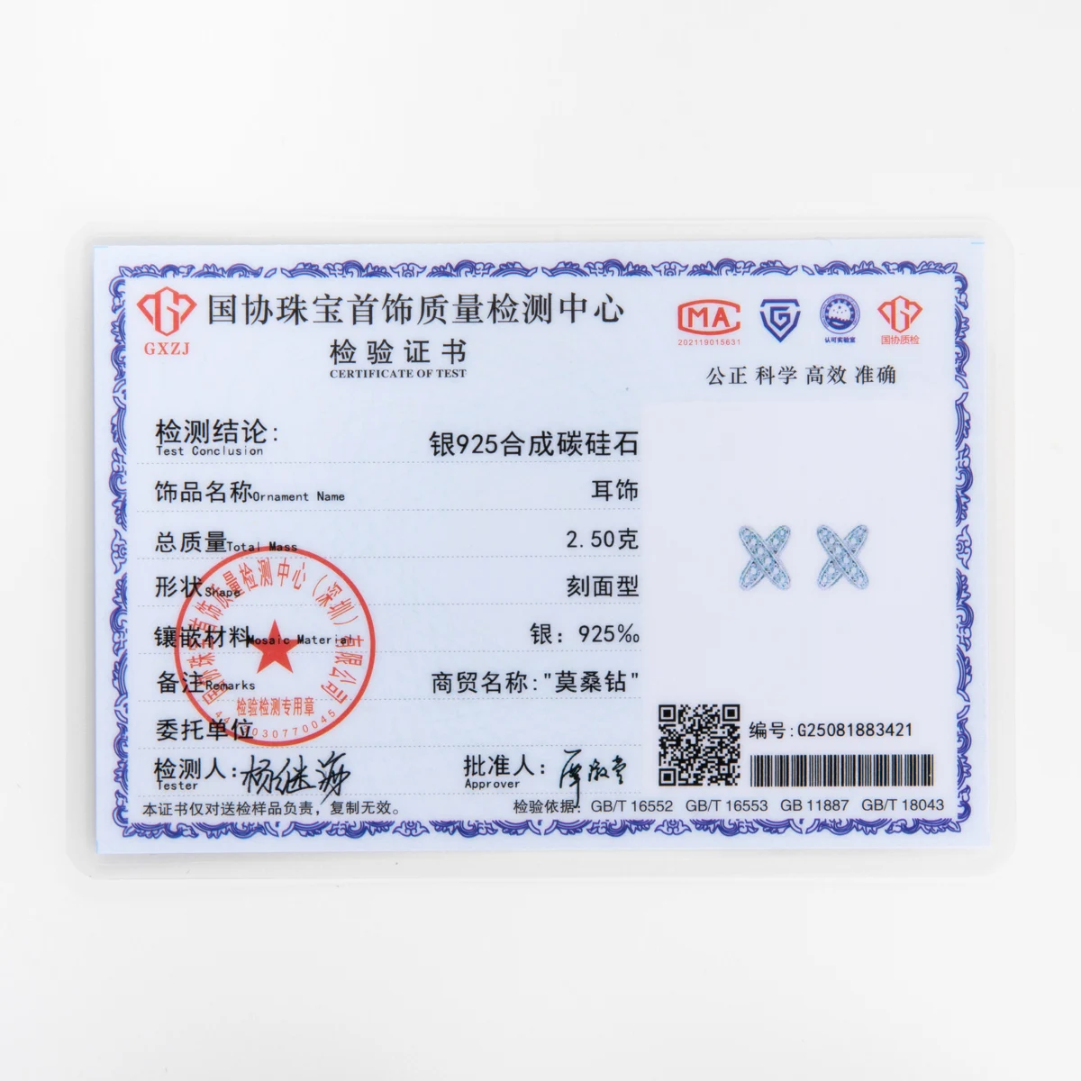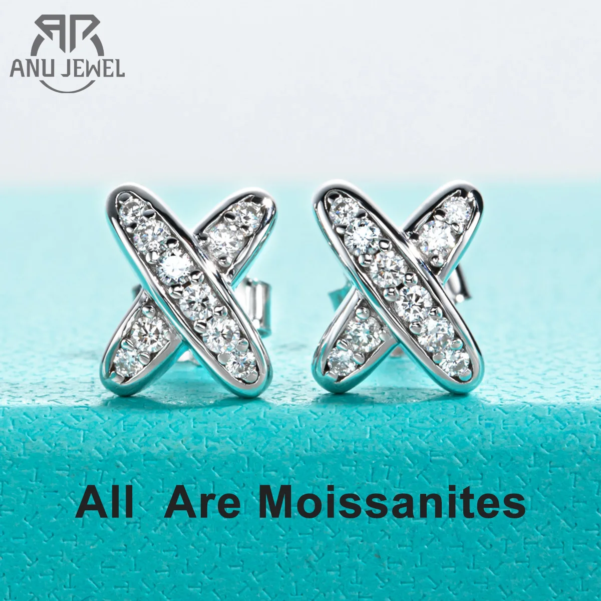 AnuJewel D Color Moissanite Diamond 925 Sterling Silver With Cer Classic Cross Stud Earrings For Woman Jewelry Wholesale